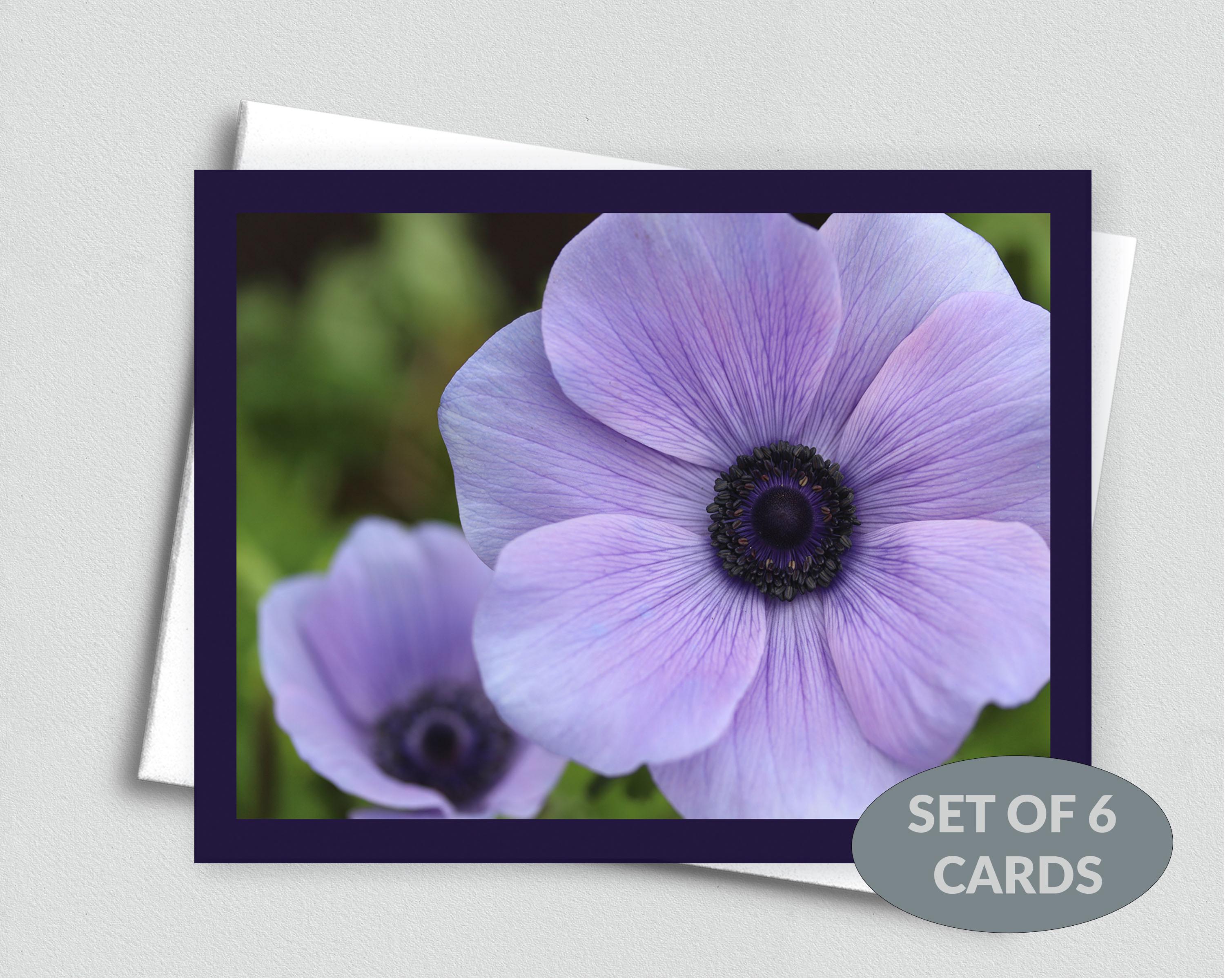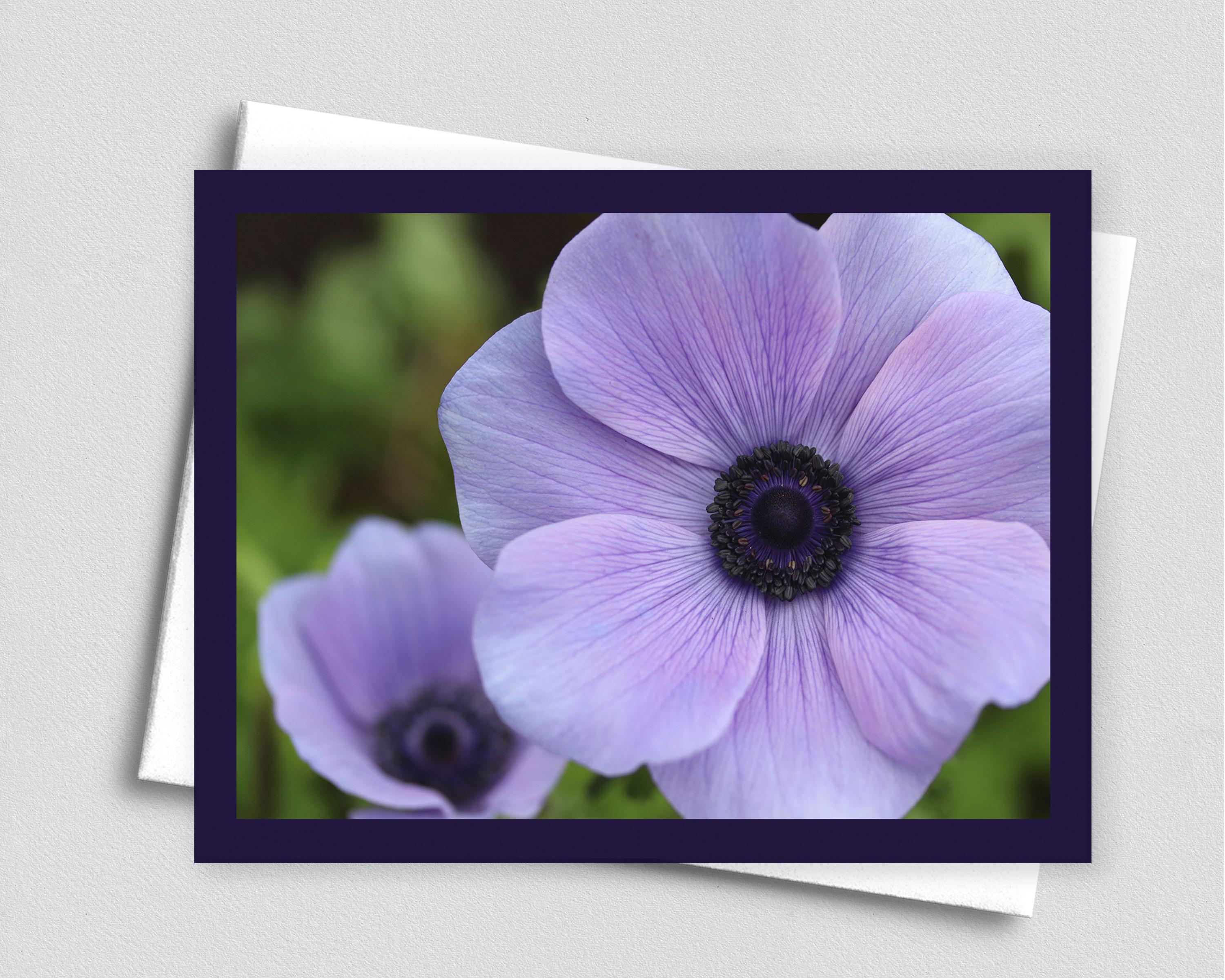 This notecard features two beautiful purple anemone flowers. Each full-color card is printed with a premium matte finish on heavy cardstock. The inside of the card is blank.